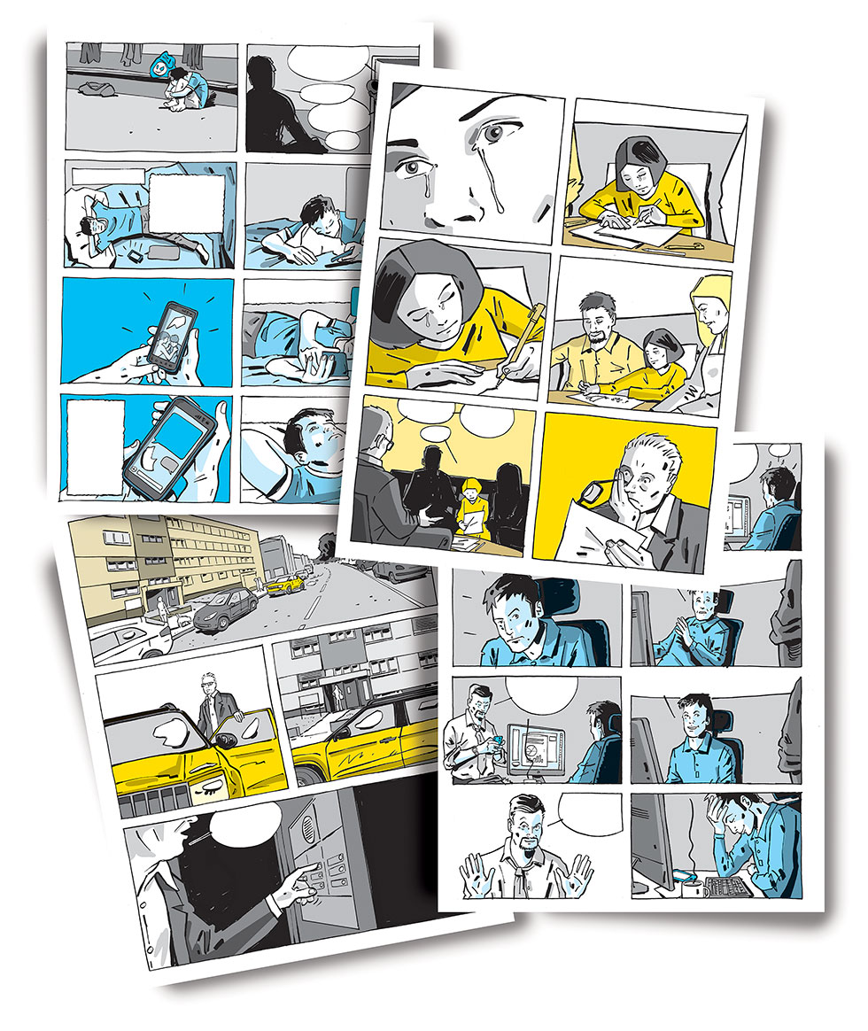 Quatre planches crayonnées de mon prochain roman graphique à paraitre chez Dunod avec marc-Antoine Deroubaix au scénario et Cyril Tarquinio pour la partie scientifique.